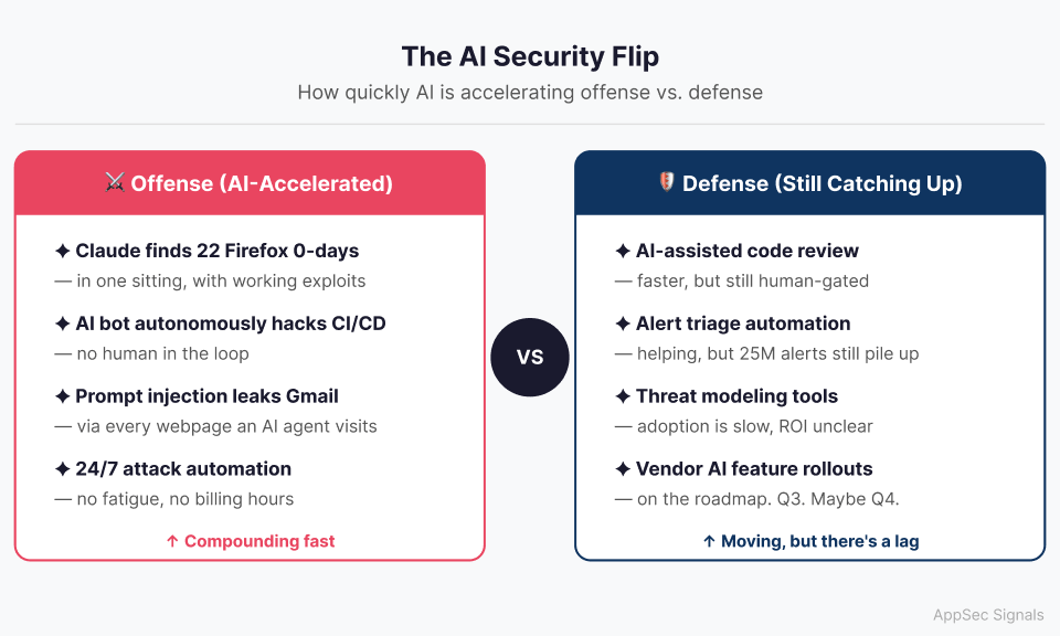 I've been saying for a while that the "AI for security" conversation was too focused on the defense side. This week handed me five stories that prove the point in ways that are hard to ignore. We're not in the "AI might eventually be used offensively" phase anymore. We're in the "an AI bot is autonomously probing your CI/CD pipeline right now" phase.